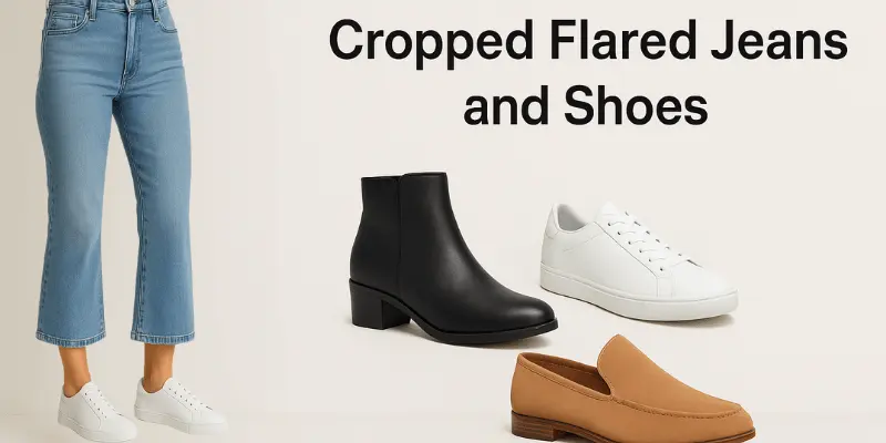 Ankle boots and sleek sneakers work best for cropped flared jeans. These shoes show off your ankles and help elongate your legs. Other great options include casual shoes for flare jeans, like simple flats or loafers.