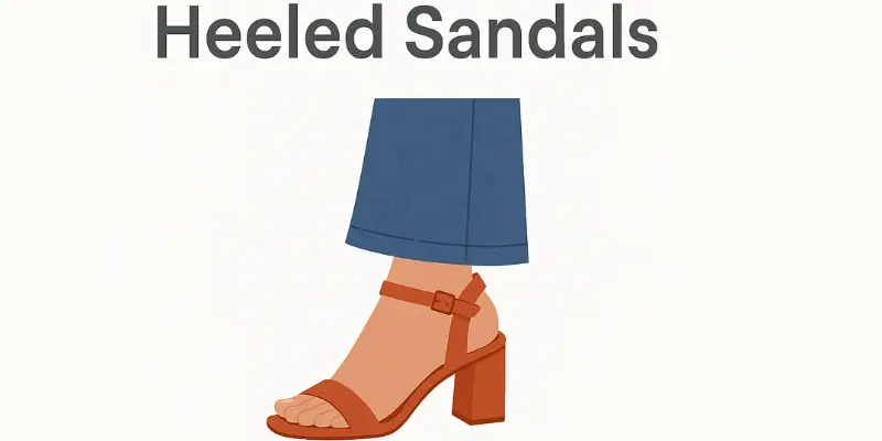 Heeled sandals are great for warmer weather. They give your legs a longer look and complement the flowy shape of bell-bottom jeans.
